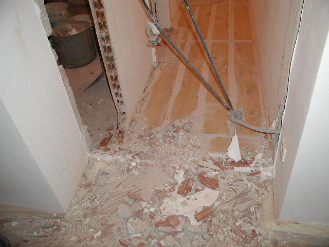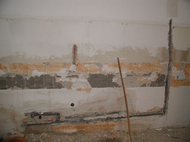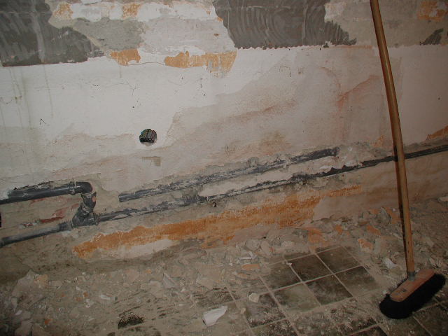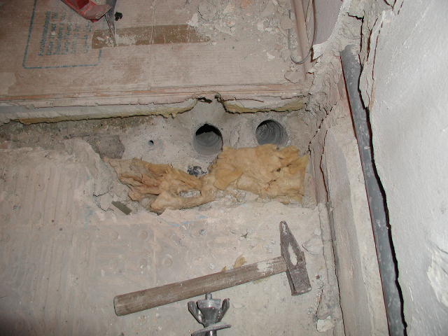 | Das Aufstemmen der Abflussrohre war wichtig, denn hier wurden alte Bauschäden (Leckagen) vermutet und auch gefunden. | |||
